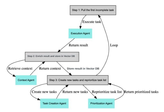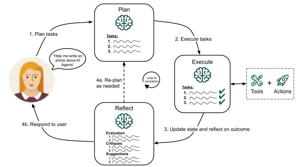 The system evaluates outputs, adjusts if needed, and continues until the task is completed.