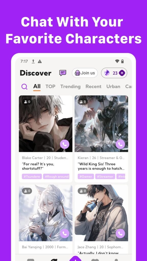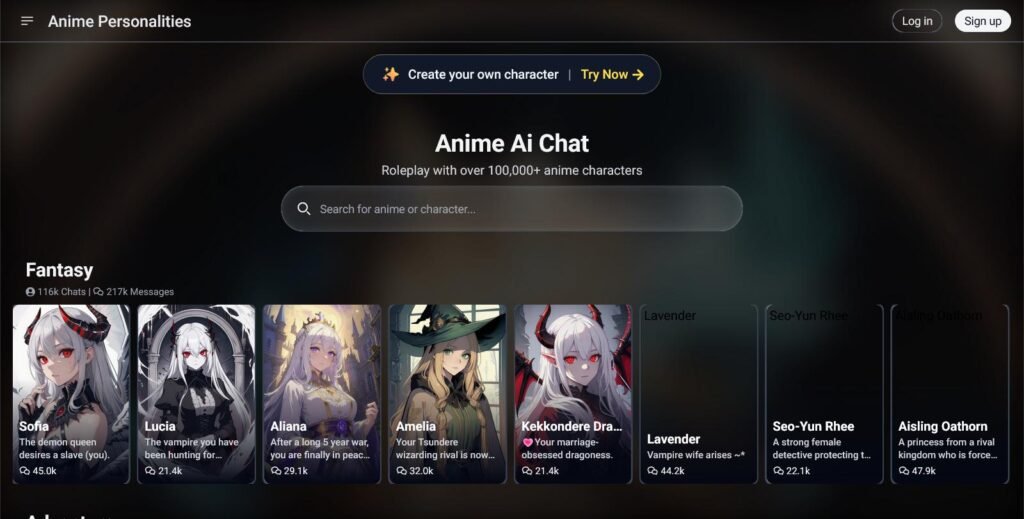 One of the standout features is its library of pre-built characters. These range from fictional personalities to anime-style avatars and even semi-realistic companions.